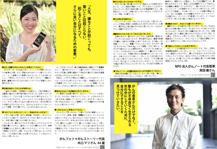 がんを経験した方や、患者さんやご家族を支援している方が、がんと向き合ってどう暮らしているのか、その先にはどんな生き方があるのかを知ると、前向きになって勇気と希望が湧く機会になるはずです。