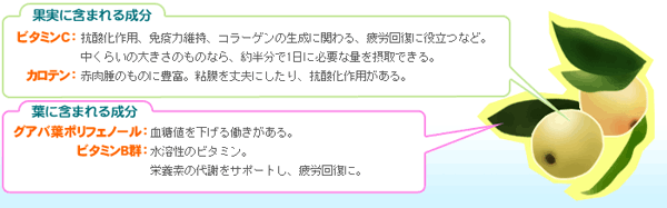 さっぱり味のジュースでおなじみ。葉にも薬効成分が含まれ、お茶としても有名。