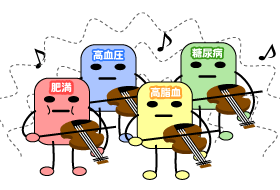 生活習慣病のなかでも、特に「肥満」「高血圧」「脂質異常症」「糖尿病」は『死の四重奏』と呼ばれています。それは、これらの病気が互いに合併しやすく、しかも合併することでより加速度的に動脈硬化や心筋梗塞などを引き起こしかねないから。