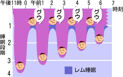 睡眠時にはノンレム睡眠とレム睡眠がワンセットになって一晩に4~5回このサイクルが繰り返されますが、朝が近づくにつれてノンレム睡眠が浅くなります。