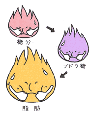 運動を始めると、まず筋肉内の糖分がエネルギーとして消費され、次に血液中のブドウ糖が消費され、糖分を使い終えてから、最後に脂肪がエネルギーとして使われるのです。
