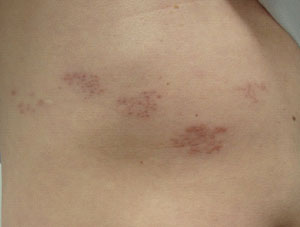 数日前から強い痛み伴った発疹が胸部にできて来院されました。服が発疹に触るだけで痛いそうです。