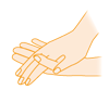 (6)片方をじゃんけんのグーの形にし、その手の指の背や爪の部分を洗う(反対も同様)
