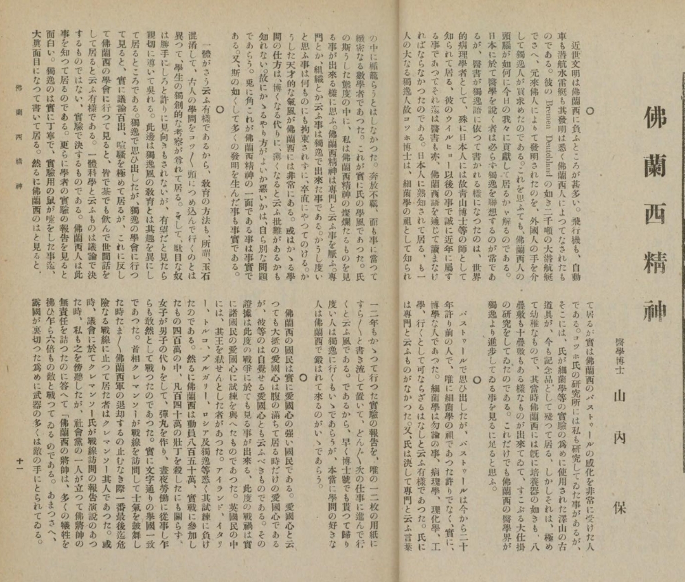 1919年の仏蘭西時報でドイツ医学を厳しく批判というか馬鹿にしています。「仏蘭西精神」というタイトルです。